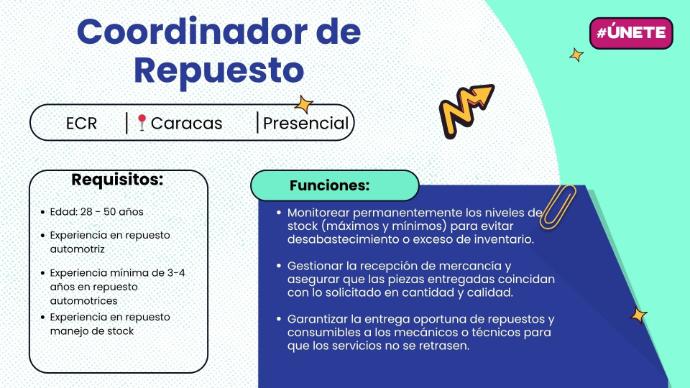 🔍¡Buscamos Coordinador de Repuesto!🔎